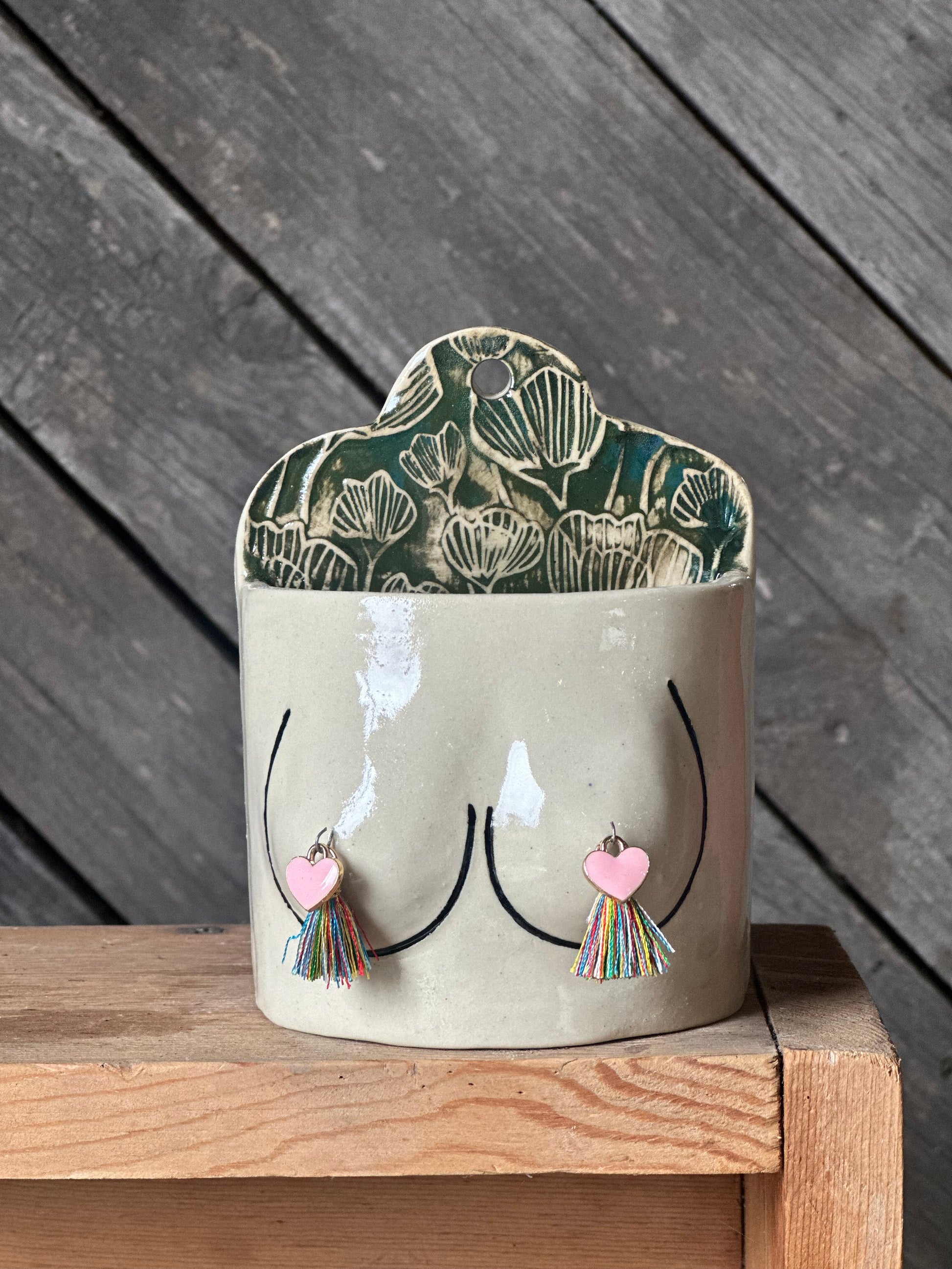 Ceramic Boob Planter/Vase with swappable tassels