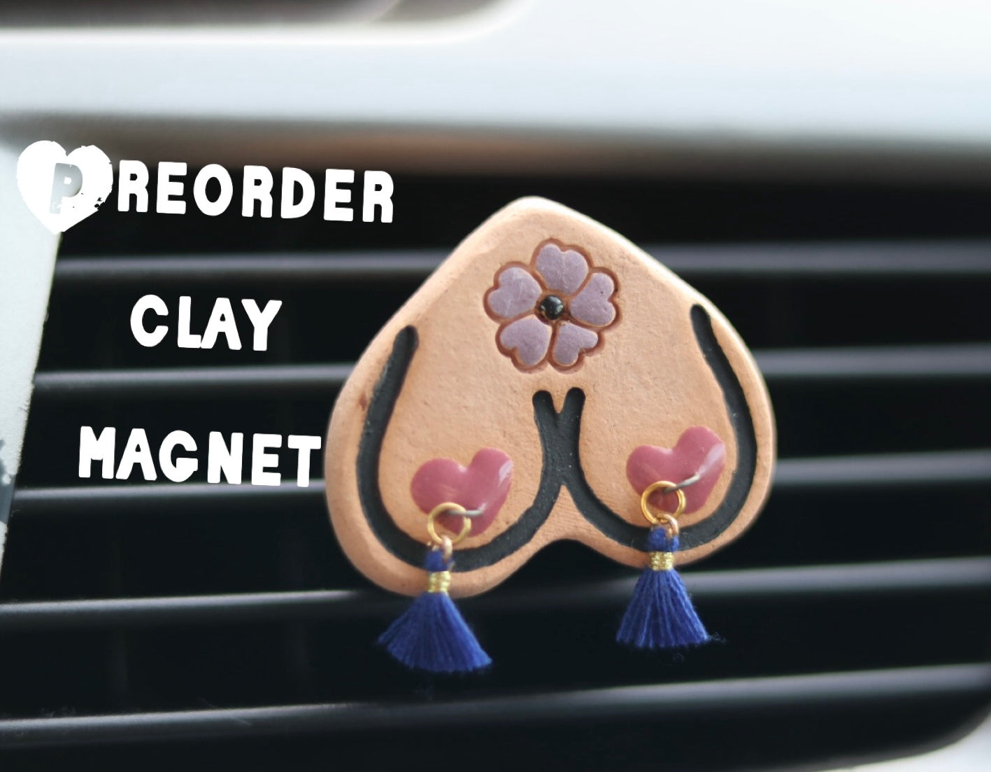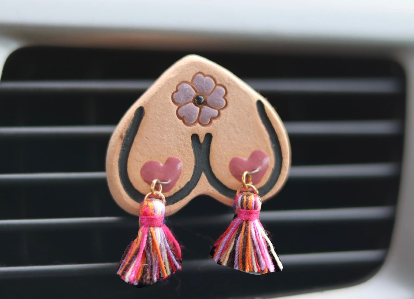 Preorder Bewbie Tassel Clay Car Freshener | Magnet | Light skin/Purple Flower